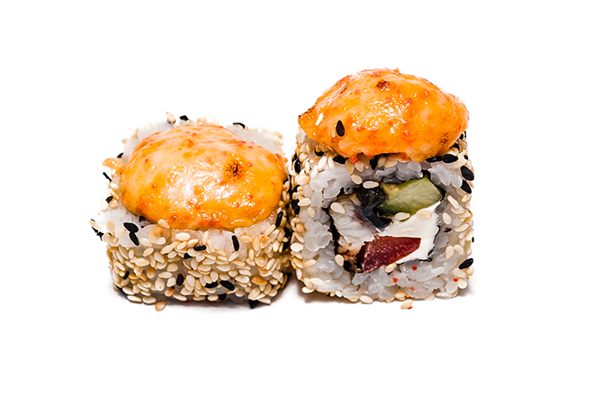 Угорь, помидор, авокадо, огурец, крем сыр, сырный соус, сезам